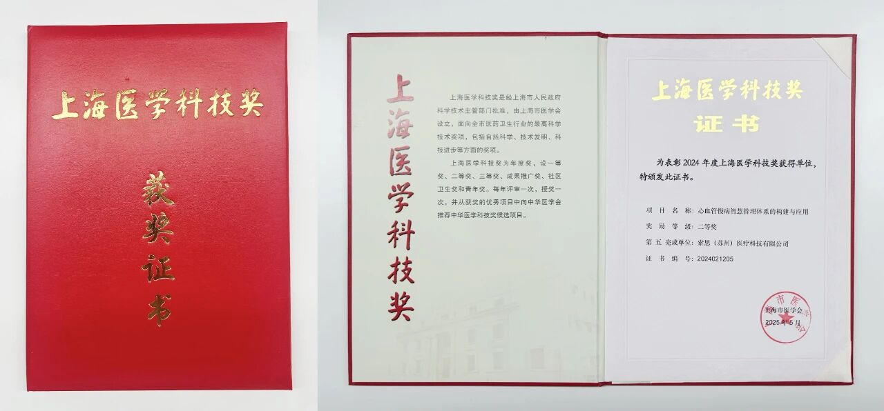 近日,2024年度上海医学科技奖获奖名单正式揭晓,由复旦大学附属中山医院牵头,索思(苏州)医疗科技有限公司等多家单位共同完成的“心血管慢病智慧管理体系的构建与应用”项目荣获二等奖。