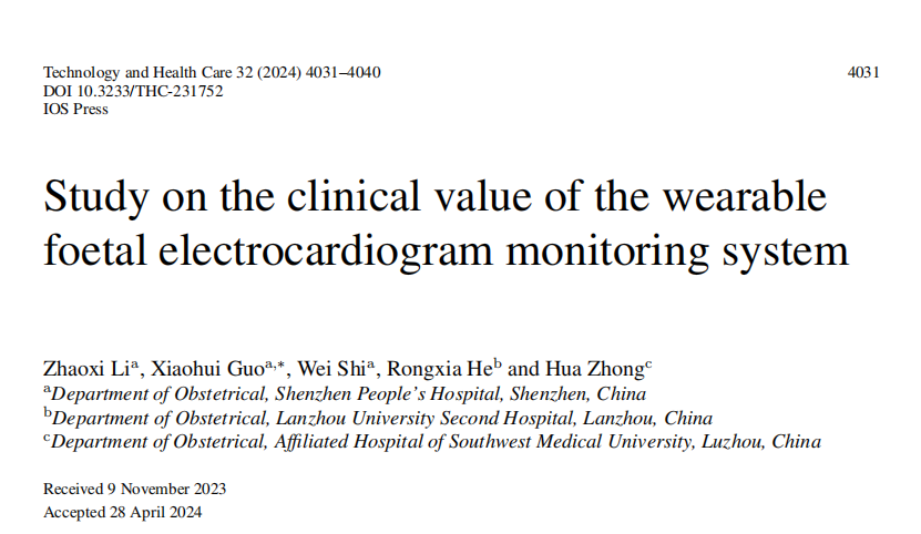 近日,国内胎儿监护权威专家、深圳市胎儿监护培训基地主任、深圳市卫健委能力教育中心郭晓辉教授协同学科团队,成功在国际著名的SCI期刊上发表关于可穿戴胎儿心电监测系统临床价值研究的论文。